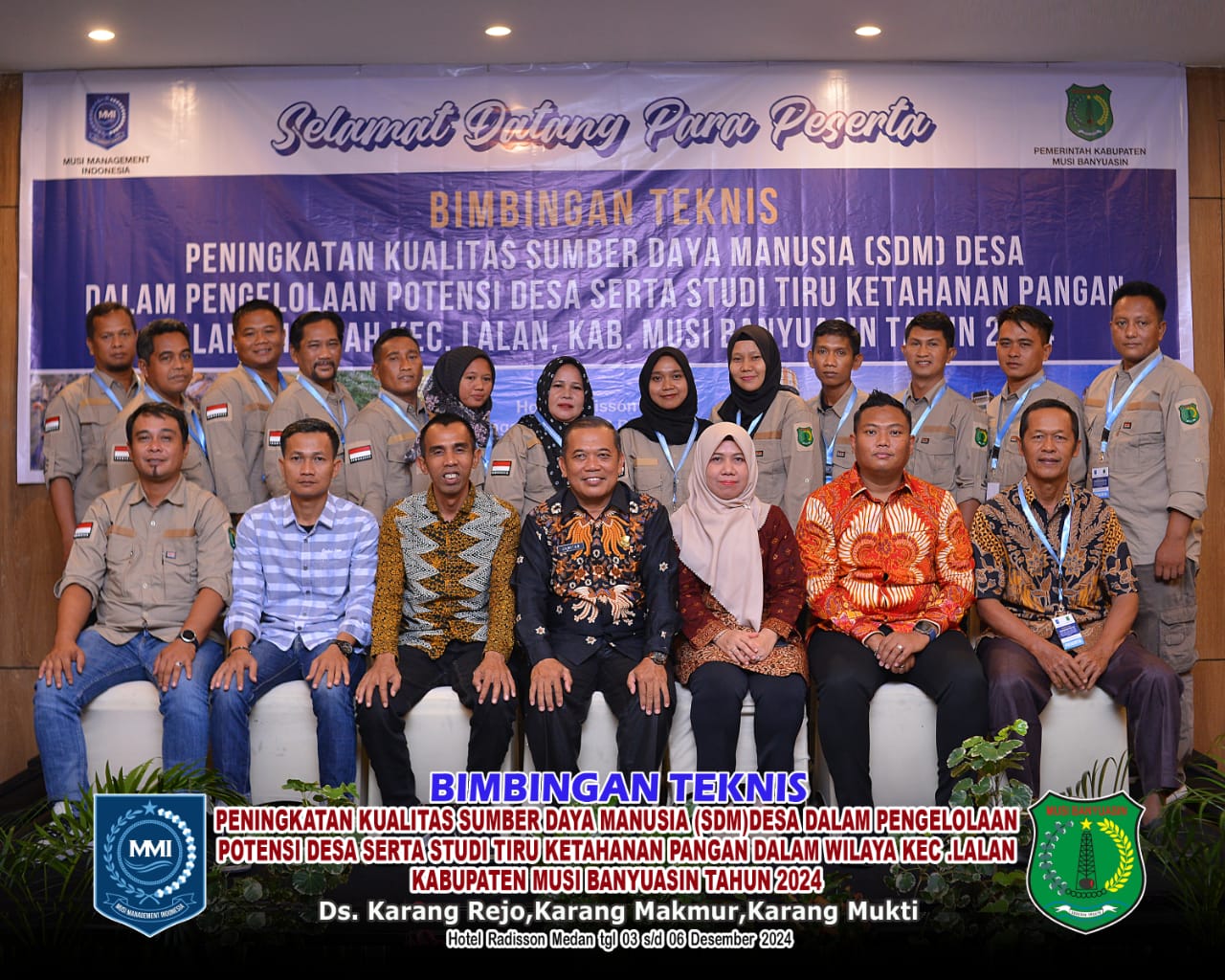 bidikcamera.com, MUBA – Pemerintahan Desa (Pemdes) Karang Makmur Kecamatan Lalan Kabupaten Musi Banyuasin mengikuti Kegiatan Bimtek Peningkatan Kualitas Sumber Daya Manusia (SDM) Desa Dalam Pengelolaan Potensi Desa Serta Studi Tiru Ketahanan Pangan dalam Wilayah Kabupaten Musi Banyuasin Tahun 2024 pada tanggal (03-06/12/24).