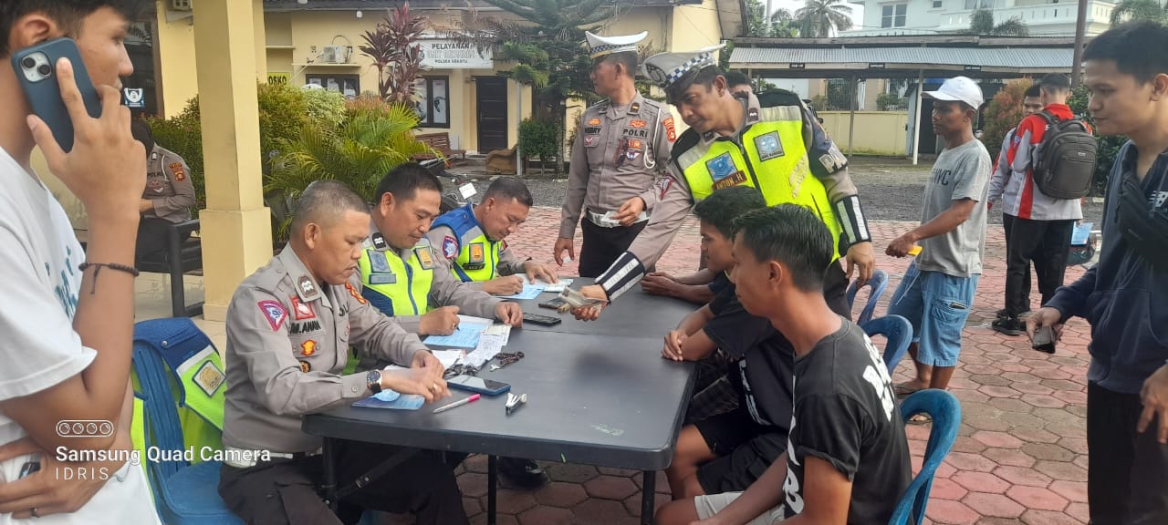 bidikcamera.com, MUBA – Puluhan kendaraan terjaring razia dalam rangka razia tertib berlalu lintas SAT Lantas Polres Muba tujuannya untuk mengkondusipkan para pengguna jalan yang melakukan pelanggaran, didepan Polsek Sekayu, Rabu (08/01/25).