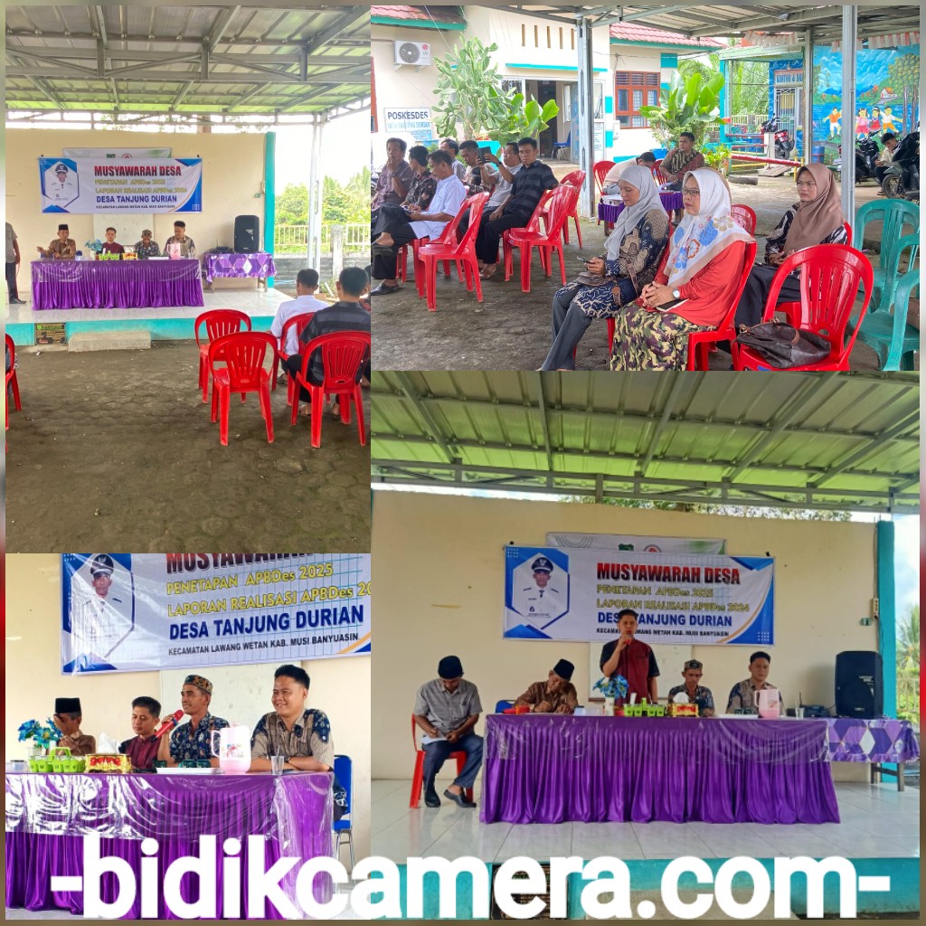 Musyawarah Desa Penetapan APBDes Tahun Anggaran 2025 dilaksanakan di seluruh Kabupaten Musi Banyuasin salah satunya adalah Desa Tanjung Durian, Musrenbangdes adalah proses perencanaan pembangunan desa yang partisipatif, dimana masyarakat desa secara aktif terlibat untuk mendiskusikan, merumuskan dan menentukan prioritas pembangunan yang dilakukan di desa.