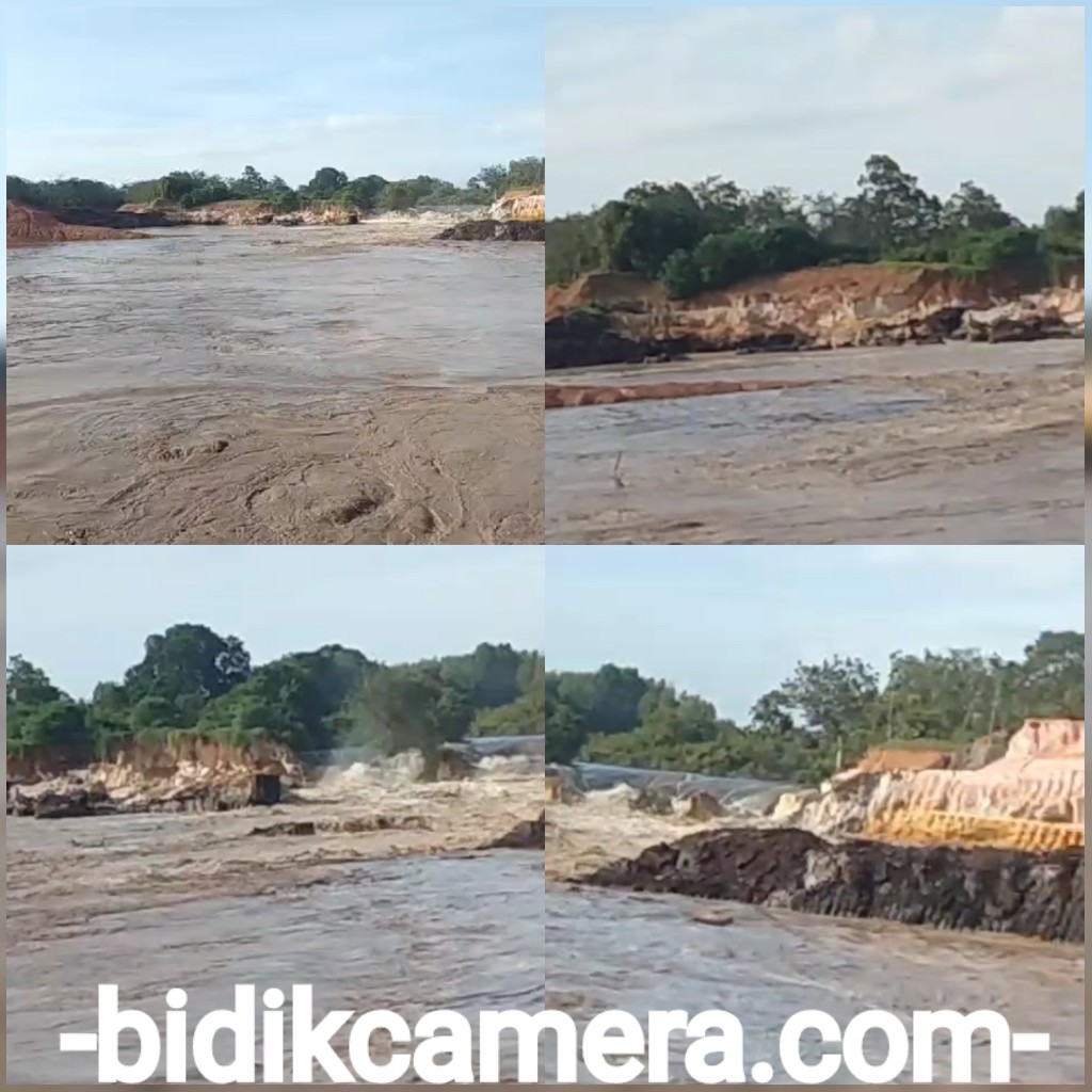 Jebolnya tanggul penahan mengakibatkan limbah-limbah minyak solar bercecer mengikuti derasnya mengalir dengan aliran air, saat awak media ke lokasi belum ada upaya penangan dari pihak perusahaan PT.BCM sehingga di lokasi bagaikan lautan.