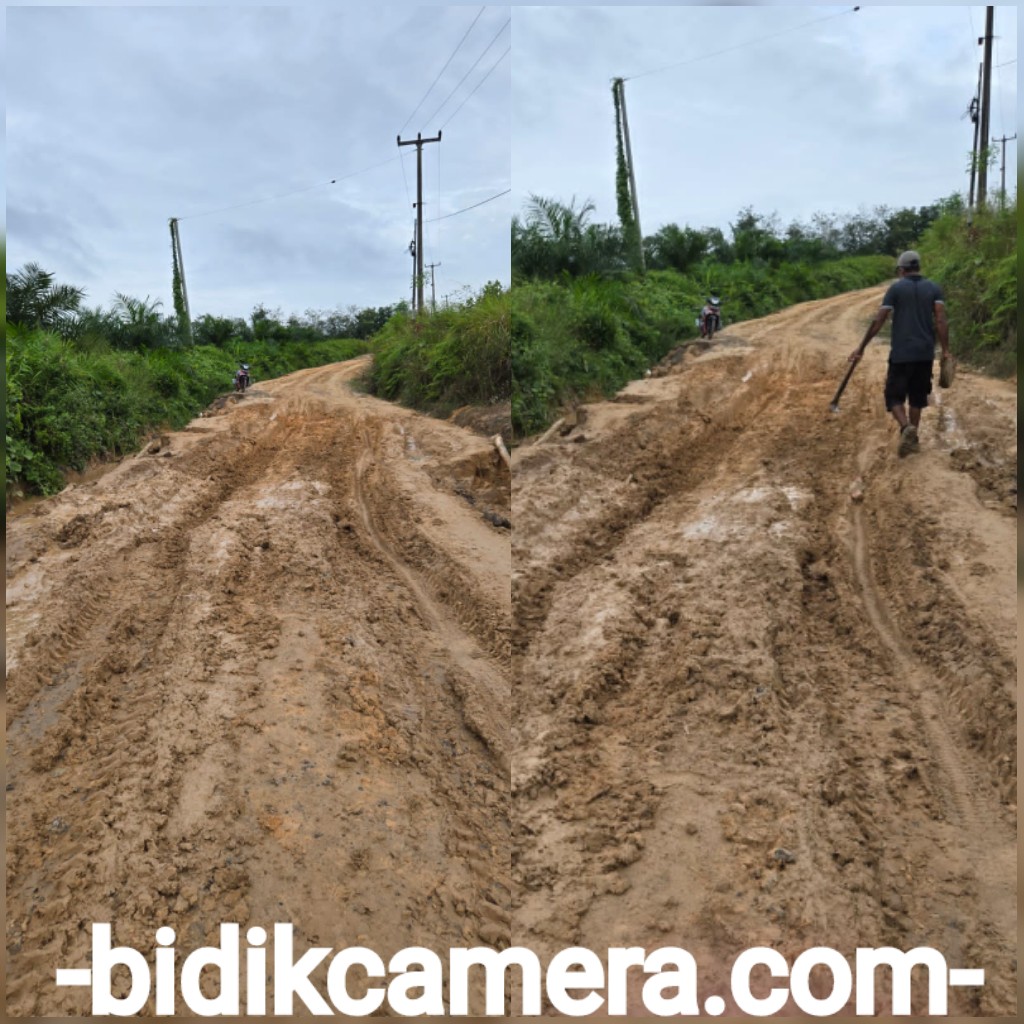 bidikcamera.com, MUBA – Akses jalan dari Desa Sumber Harum menuju ke Desa Sido Mulyo Kecamatan Tungkal Jaya Kabupaten Musi Banyuasin nyaris putus akibat tanah di badan jalan terbis (18/04/25).