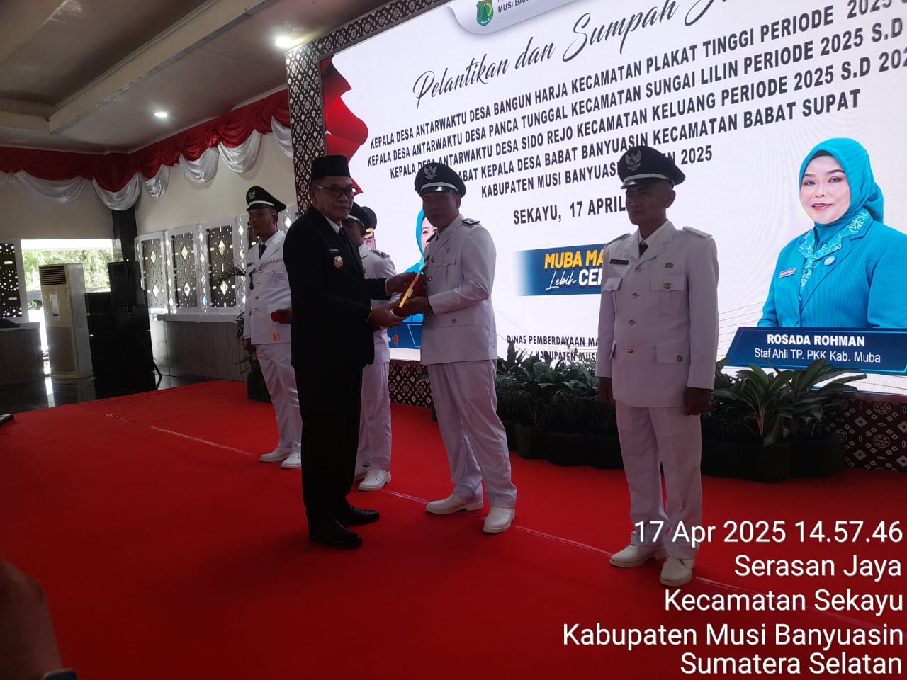 Dalam sambutannya, Plt. Kepala Dinas Pemberdayaan Masyarakat dan Desa (PMD) Kabupaten Musi Banyuasin, H. Ali Badri, S.T, M.T., menegaskan bahwa pelantikan tersebut mengacu pada berbagai regulasi, termasuk Undang-Undang Nomor 6 Tahun 2014 tentang Desa yang telah diubah dengan Undang-Undang Nomor 3 Tahun 2024, serta peraturan daerah yang berlaku.