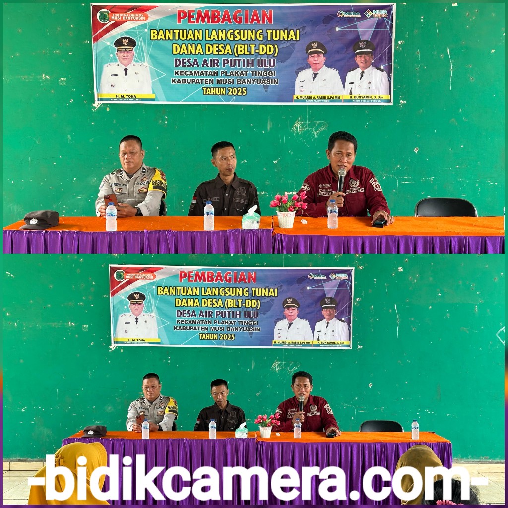 bidikcamera.com, MUBA – Pemerintah Desa (Pemdes) Air Putih Ulu Kecamatan Plakat Tinggi Kabupaten Musi Banyuasin membagikan bantuan BLT-DD periode triwulan kedua kepada 26 KPM tahun 2025 (02/05/25).