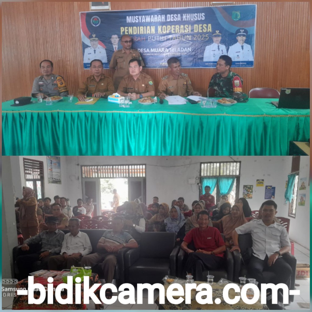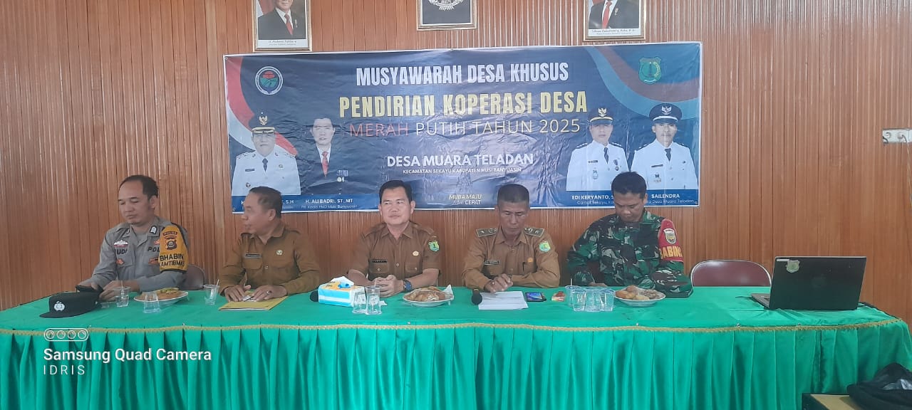 Rapat khusus ini berdasarkan Petunjuk Pelaksanaan Menteri Koperasi Republik Indonesia Nomor 1 Tahun 2025 tentang Pembentukan Koperasi Desa Merah Putih, sehubungan dengan hal tersebut Pemerintah Desa Muara Teladan melaksanakan gelar Musyawarah Desa Khusus Pembentukan Koperasi Desa Merah Putih Kegiatan tersebut dibawakan oleh Tim Monitoring Kecamatan Sekayu dan dinas koperasi Kabupaten Musi Banyuasin.