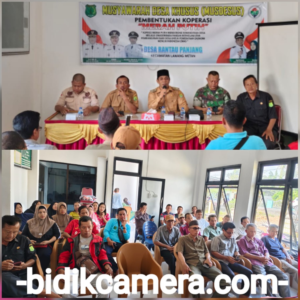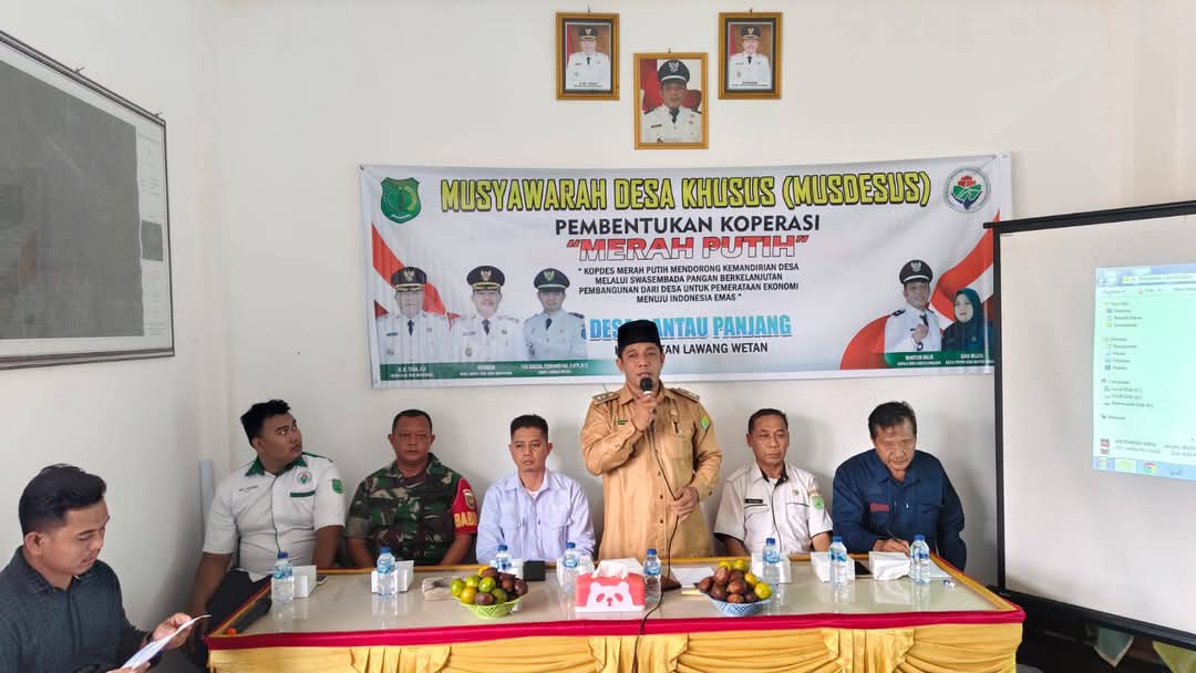 Berdasarkan Petunjuk Pelaksanaan Menteri Koperasi Republik Indonesia Nomor 1 Tahun 2025 tentang Pembentukan Koperasi Desa Merah Putih, sehubungan dengan hal tersebut Pemerintah Desa Rantau Panjang melaksanakan kegiatan Musyawarah Desa Khusus Pembentukan Koperasi Desa Merah Putih Kegiatan tersebut dibawakan oleh Tim Monitoring pihak Kecamatan.