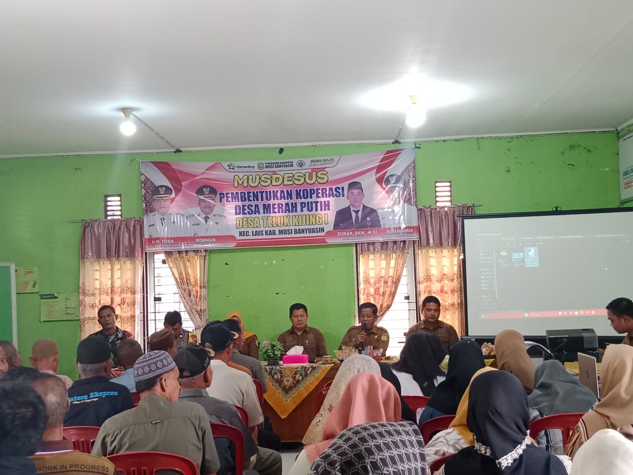 Berdasarkan Petunjuk Pelaksanaan Menteri Koperasi Republik Indonesia Nomor 1 Tahun 2025 tentang Pembentukan Koperasi Desa Merah Putih, Sehubungan dengan hal tersebut Pemerintah Desa Teluk kijing 1 melaksanakan kegiatan Musyawarah Desa Khusus Pembentukan Koperasi Desa Merah Putih Kegiatan tersebut dibawakan oleh Tim Monitoring Kecamatan Lais Kepala Desa Teluk Kijing 1 beserta Perangkat Desa, BPD, Lembaga Desa, Tokoh Masyarakat, Tokoh Pemuda, Tokoh Perempuan dan Pelaku UMKM.