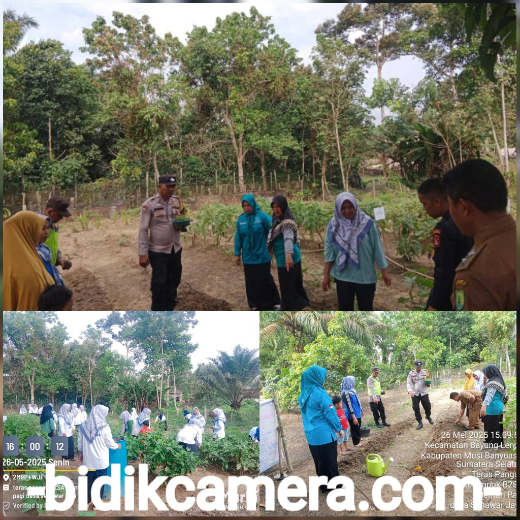bidikcamera.com, MUBA – Pemerintahan Desa (Pemdes), TP-PKK, Kelompok Wanita Tani (KWT) Senawar Jaya bersama dengan Binmas dan Babinkamtibmas Polsek Kecamatan Bayung Lencir Kabupaten Musi Banyuasin bersenergi membangun Ketahanan Pangan Bergizi (P2B) memanfaatkan pekarangan rumah.