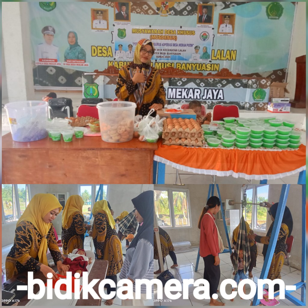 bidikcamera.com, MUBA – TP PKK Desa Mekar Jaya Kecamatan Lalan Kabupaten Musi Banyuasin mengadakan kegiatan Posyandu Balita, serta Pembagian Makanan Tambahan (PMT) yang dilaksanakan setiap bulan, untuk kali ini dilaksanakan pada tanggal (13/06/25).