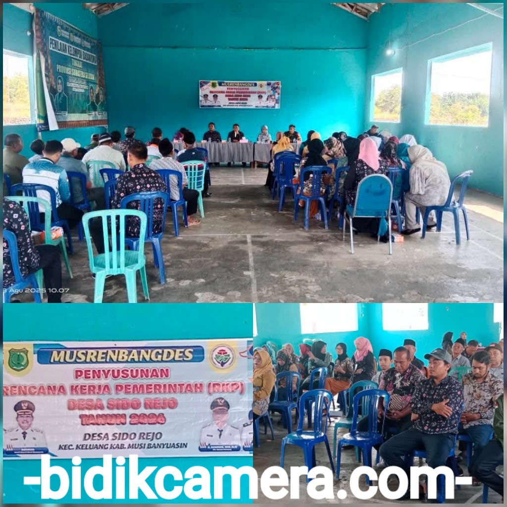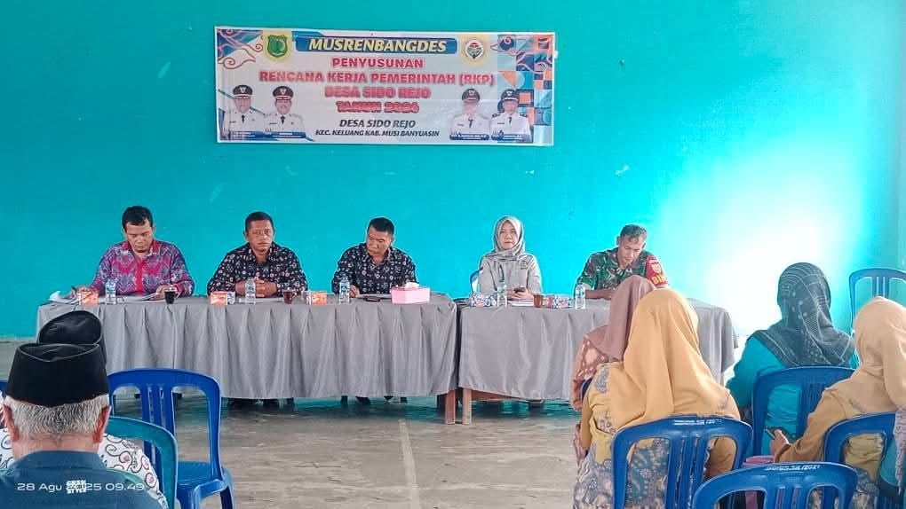 bidikcamera.com, MUBA – Pemerintah Desa Sido Rejo Kecamatan Keluang Kabupaten Musi Banyuasin melaksanakan kegiatan Musyawarah Desa Penetapan Rencana APBDes untuk RKP Tahun Anggaran 2026 (28/08/25).