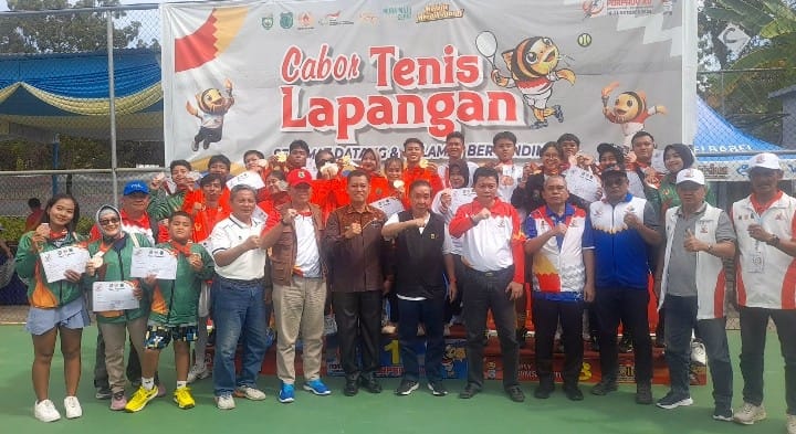 bidikcamera.com, MUBA – Atlet cabor Tenis Lapangan Kabupaten Musi Banyuasin sapu bersih medali emas di pertandingan PORPROV Sumsel di Kabupaten Muba, dari 7 medali emas yang di perebutkan, ke 7 medali emas di gondong atlet Muba pada pertandingan final, Kamis (23/10/25).