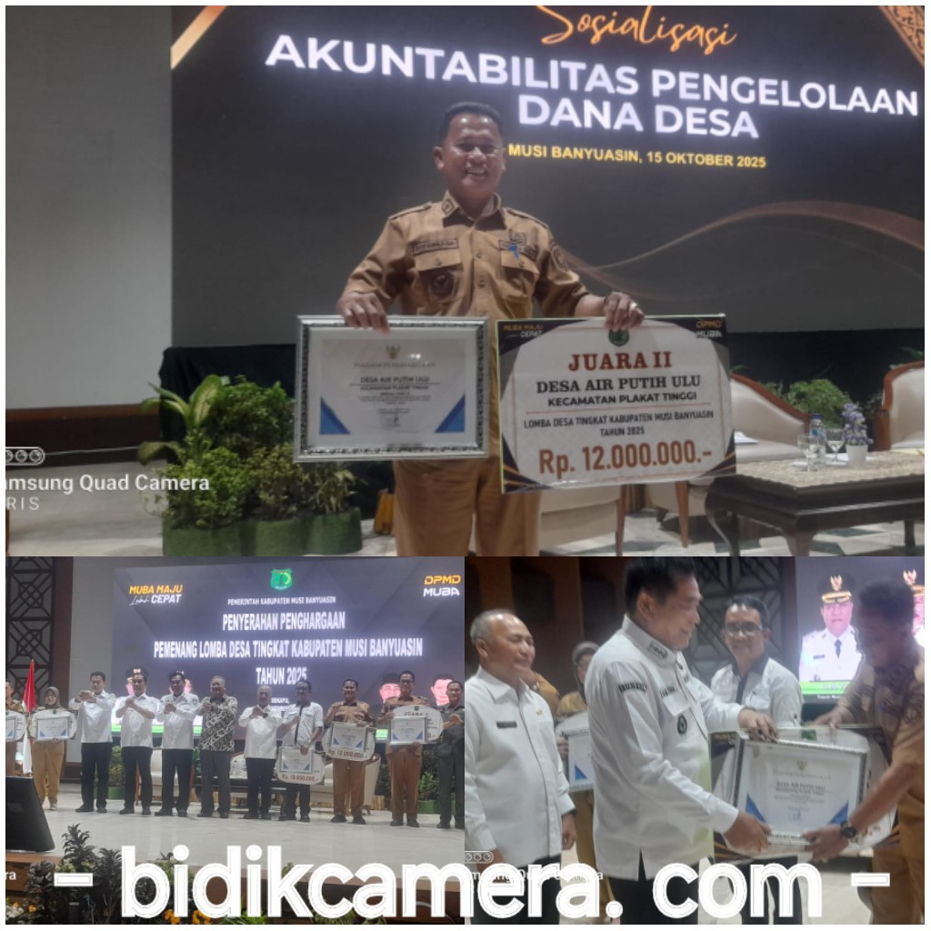 bidikcamera.com, MUBA – Desa Air Putih Ulu mendapatkan penghargaan dari Bupati Musi Banyuasin dalam rangka lomba desa tingkat kabupaten, penyerahan penghargaan berlangsung di opproom Pemerintah Kabupaten (Pemkab) Musi Banyuasin (Muba) (15/10/25).