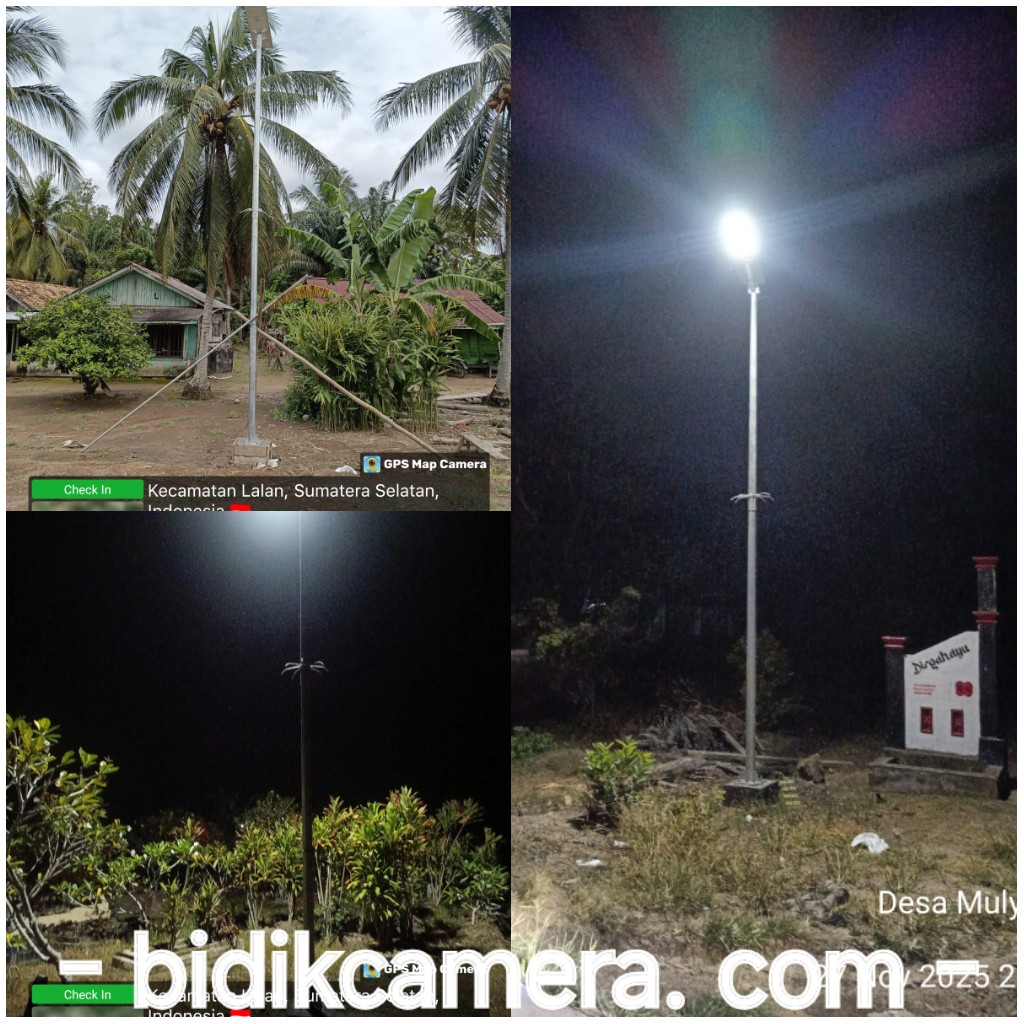 bidikcamera.com, MUBA – Masyarakat Desa Mulya Jaya Kecamatan Lalan Kabupaten Musi Banyuasin merasa kesenangan dengan mendapatkan bantuan dari dinas PUPR berupa lampu penerangan jalan bertenaga surya yang direalisasikan tahun 2025, bantuan lampu penerangan jalan bertenaga surya yang dipasangkan oleh dinas PUPR Kebupaten Muba di jalan-jalan utama Desa Mulya Jaya sebanyak 31 titik.