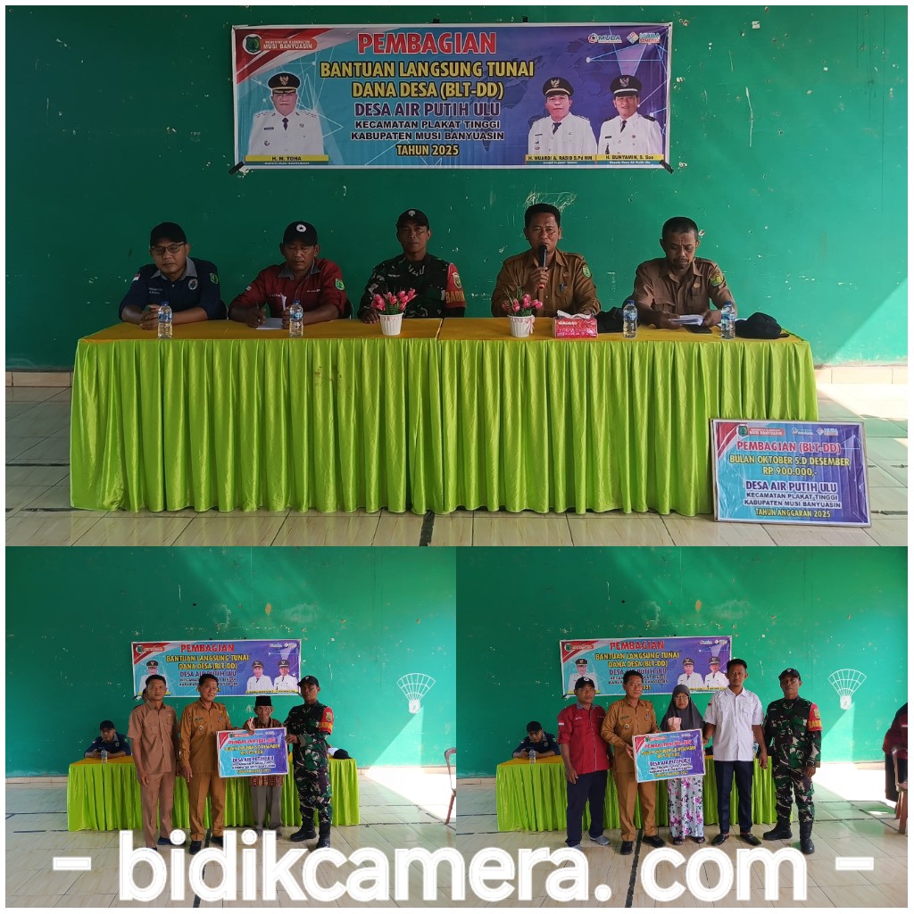 bidikcamera.com, MUBA – Pemerintah Desa (Pemdes) Air Putih Ulu Kecamatan Plakat Tinggi Kabupaten Musi Banyuasin menyalurkan BLT-DD kepada 26 KPM untuk periode triwulan ke IV (empat) pada tanggal (04/11/25) yang dilakukan di kantor desa dihadiri Kepala Desa, didampingi Sekdes, perangkat desa, BPD dan anggota, KPMD, LPM, KPM dan disaksikan Babinsa.
