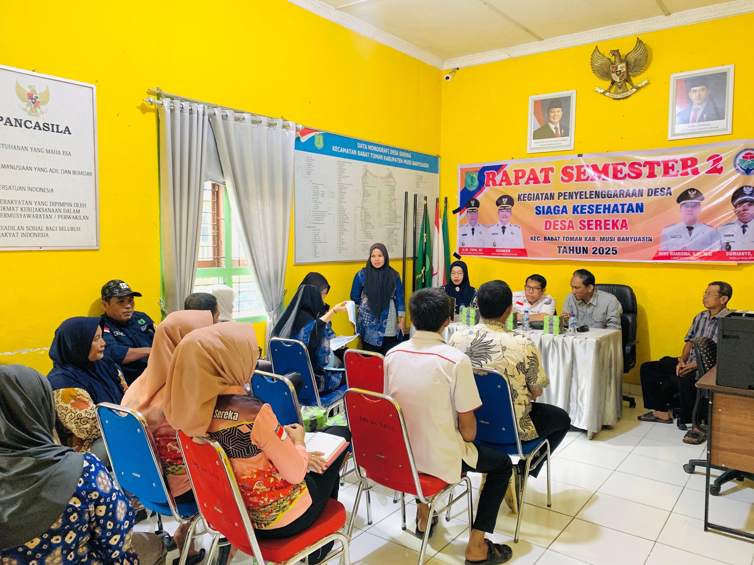 bidikcamera.com, MUBA – Pemerintah Desa Sereka Kecamatan Babat Toman Kabupaten Musi Banyuasin menunjukkan komitmennya dalam meningkatkan kesadaran kesehatan masyarakat dengan menggelar Rapat Semester 2 dalam kegiatan penyelenggaraan Desa Siaga Kesehatan yang berlangsung di ruang rapat kantor Desa Sereka pada Kamis (11/12/25).