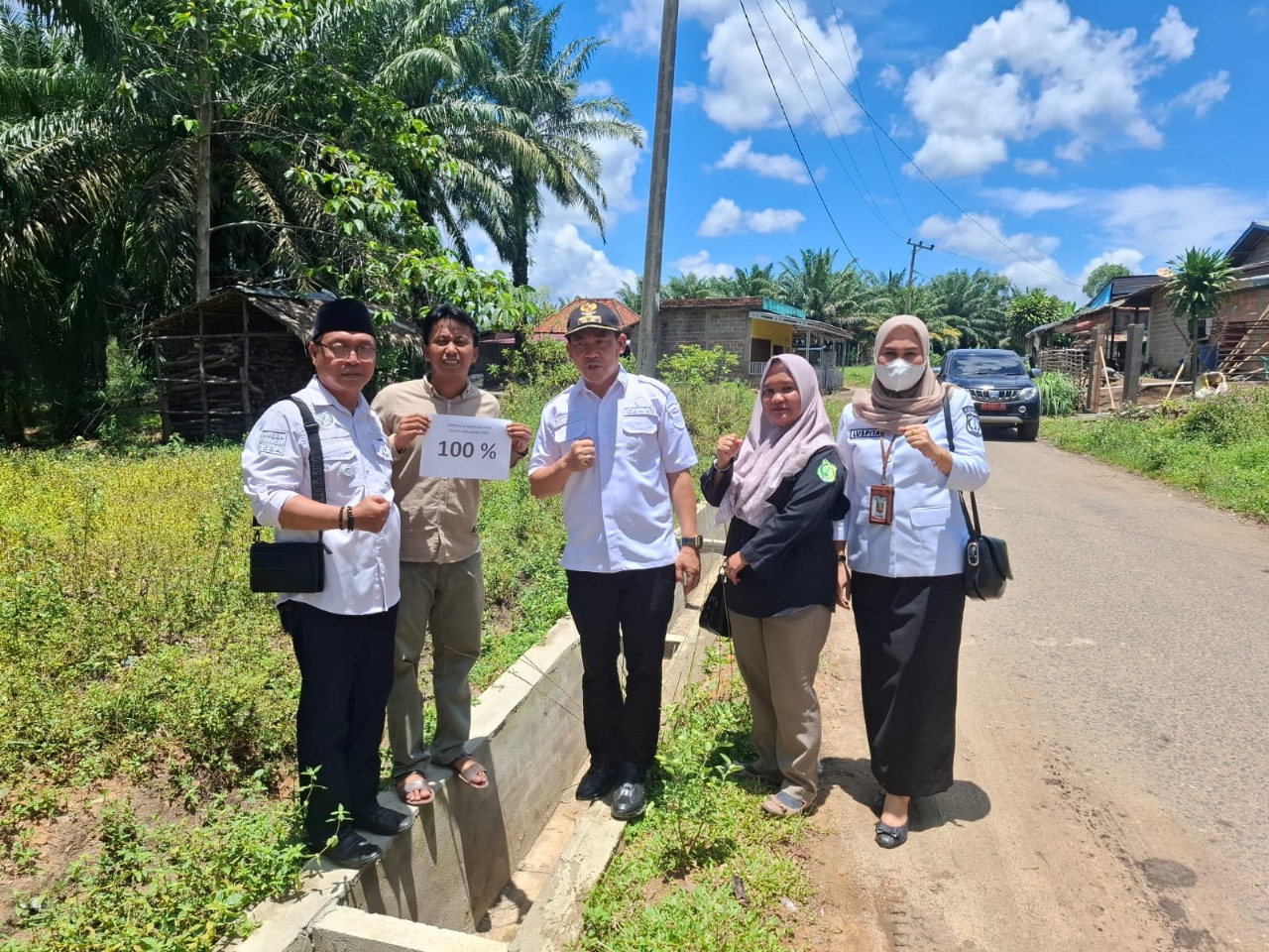 Setelah pembuatan parit selesai 100% Plt camat lais Zukar SKM, M.Si bersama tim kecamatan langsung turun untuk kroscek Pembuatan parit di Desa TAB. (bc)